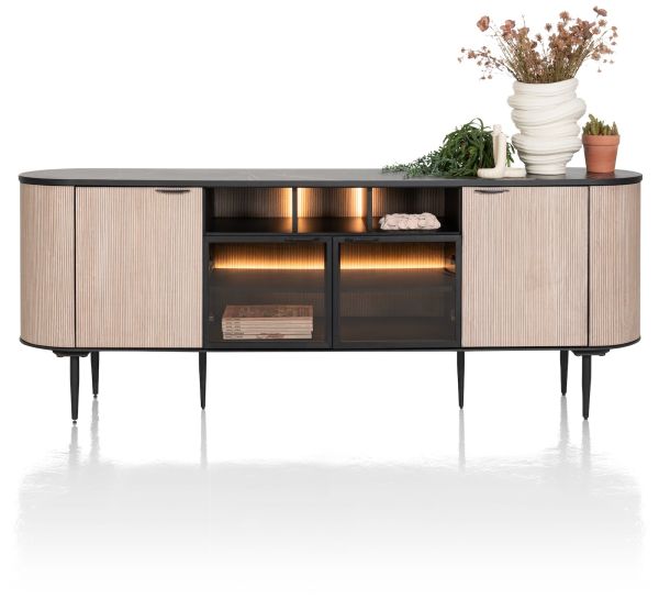 Aramon, buffet 210 cm. - 2-portes + 2-portes en verre + 3-niches (+ LED)