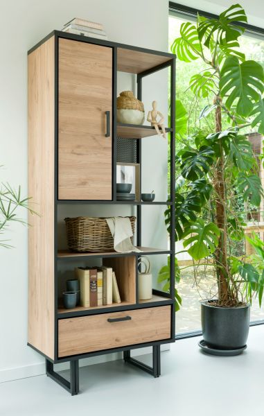 Avalon-Bahia, bibliotheque 80 cm - 1-porte + 1-tiroir + 5-niches