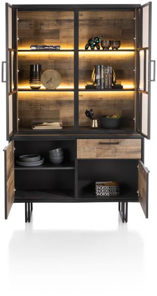 Avalon-Bahia, buffet haut 120 cm - 2-portes + 1-porte en verre + 1-porte rabattante (+ LED)