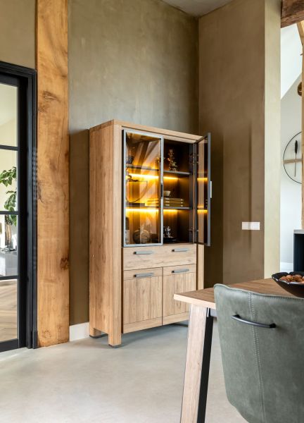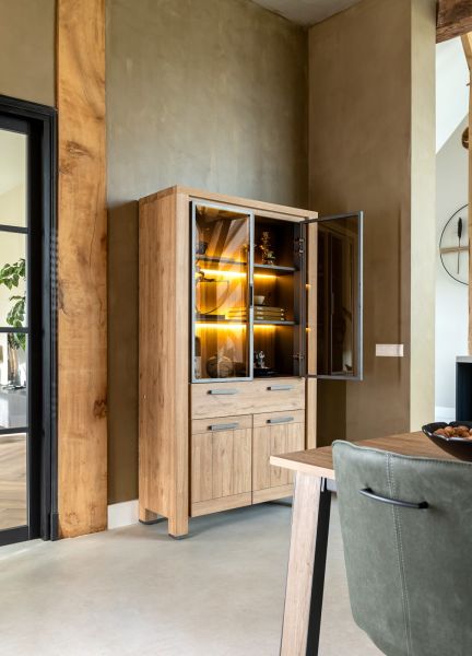 Delmonte-Messine, vitrine 110 cm - 2-portes en verre + 2-portes + 1-tiroir (+ LED)