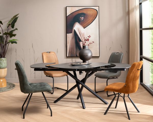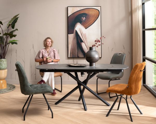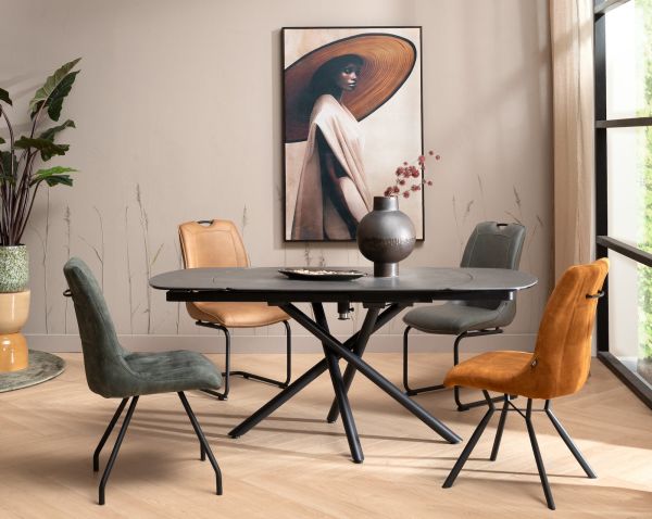 Mischa-Laurent, chaise de bar - pieds traineau carre + poignee - tissu Karese