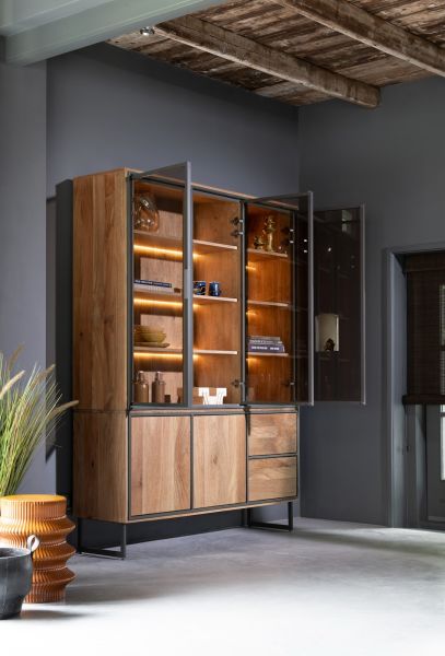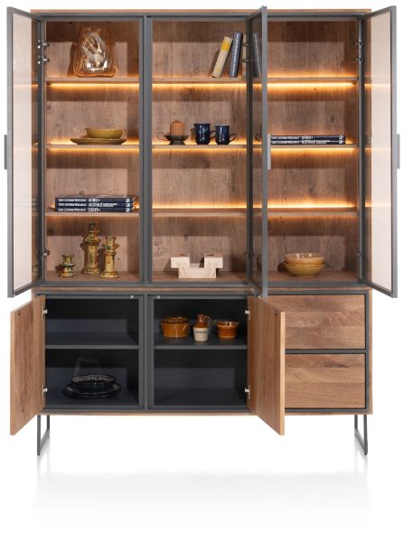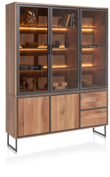 Trapani-Grenade, vaisselier 160 cm - 3-portes verres + 2-portes + 2-tiroirs (+ LED)