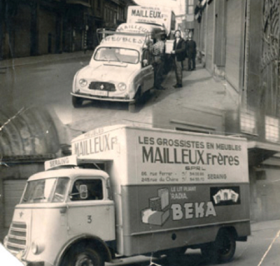 La société existante se divise en trois. Robert MAILLEUX Père dispose d’un établissement à Seraing et d’un autre à Neupré. Albert MAILLEUX dispose d’un bâtiment à Seraing (Rue du Chêne). Robert MAILLEUX Fils et Jacques MEAN reprennent le commerce de meubles d’occasion et créent la S.P.R.L. Mailleux-Méan.